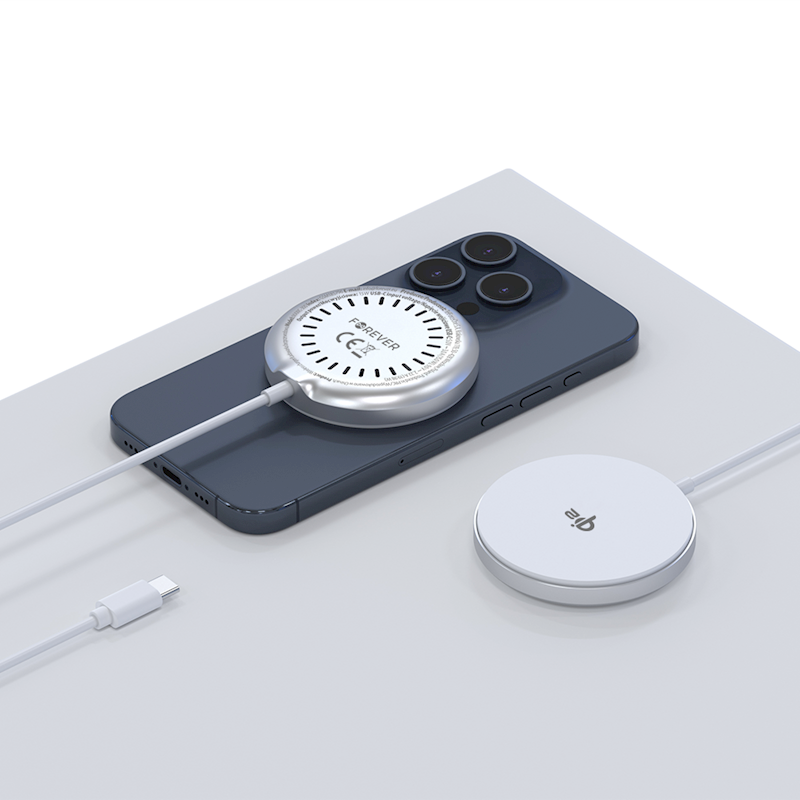 MagSafe-yhteensopiva Qi2 MAWC-300 Forever -langaton laturi on suunniteltu langatonta latausta tukeville laitteille. Se tarjoaa nopean 15 W:n latauksen ja vahvojen magneettien ansiosta se tarttuu tiukasti puhelimeen varmistaen turvallisen ja kätevän käytön.
