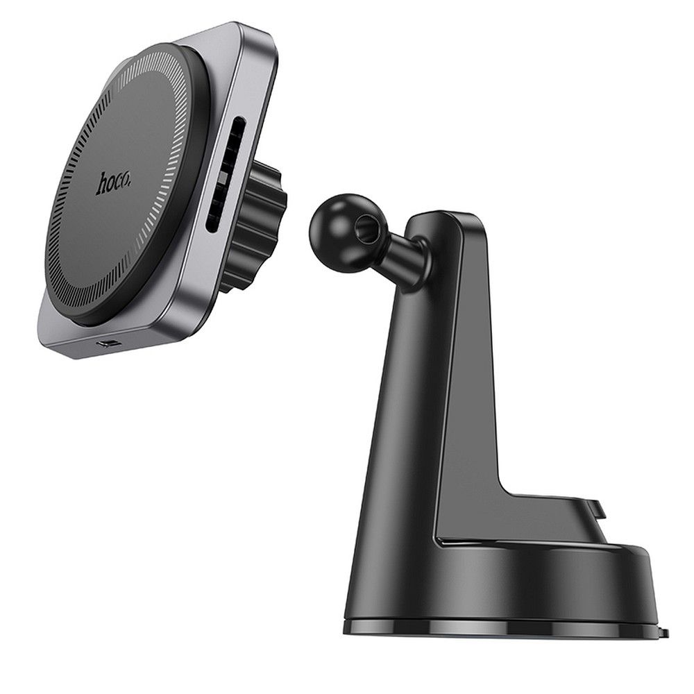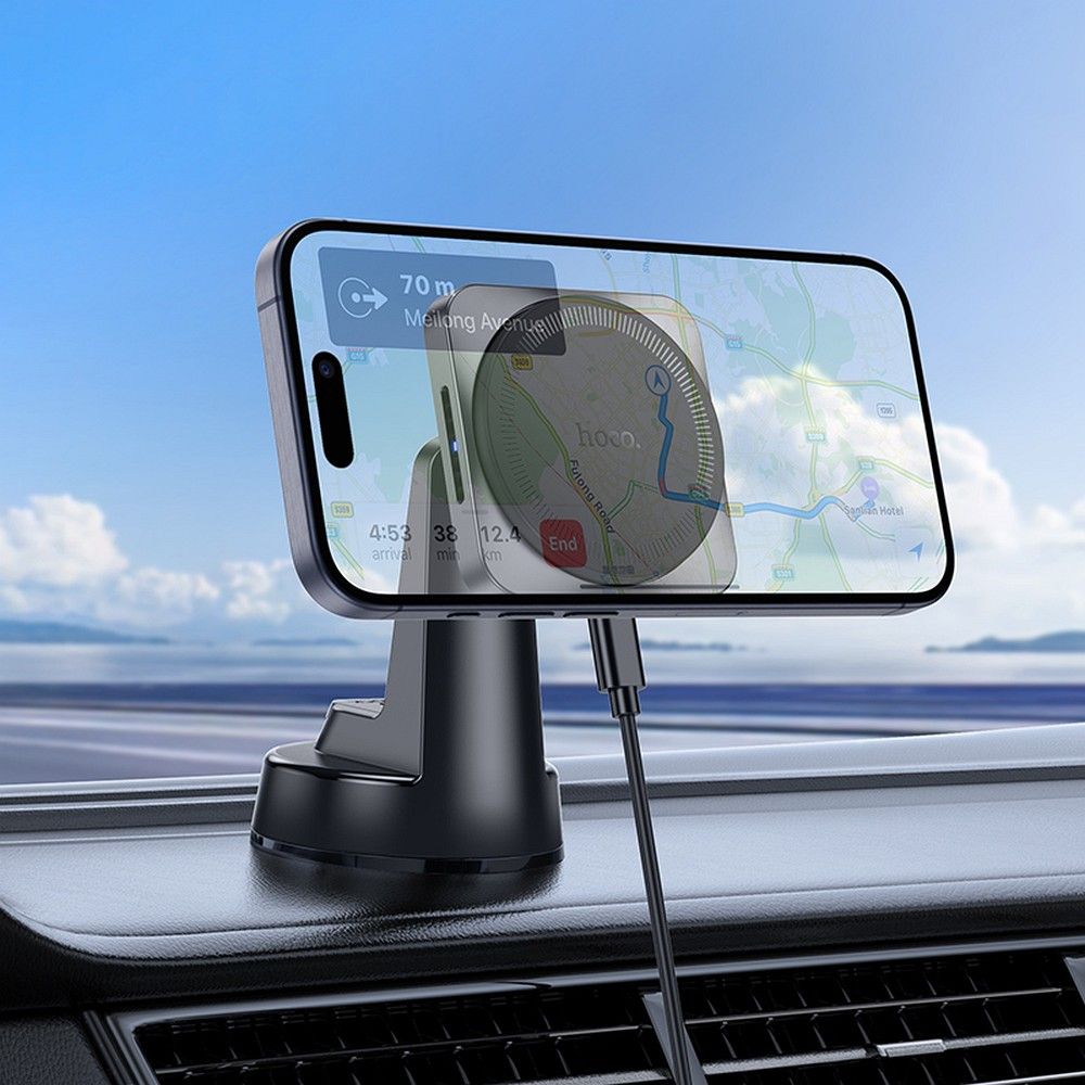 Hoco 15W MagSafe-latausasema autoon mahdollistaa turvallisen ja kätevän puhelimen käytön sekä langattoman latauksen ajon aikana. Teline kiinnitetään auton kojelautaan.